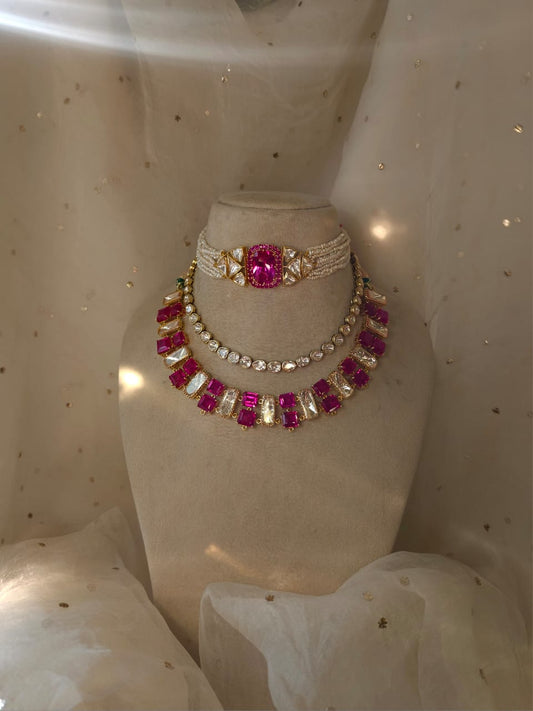 A solely created collection of neck pieces embellished with precious and semi-precious...