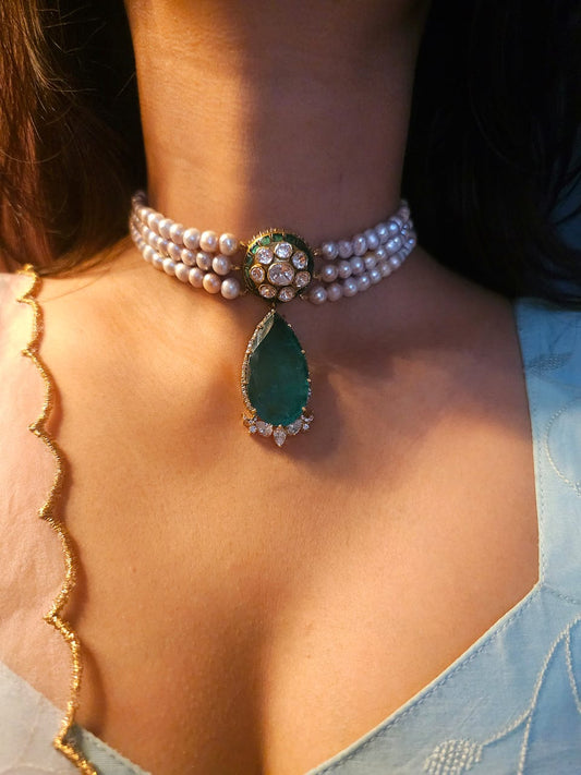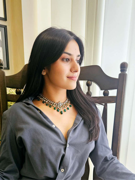 Sawai polki silver necklace