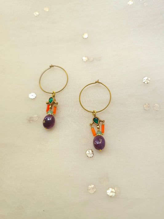 Amethyst drop hoop earrings