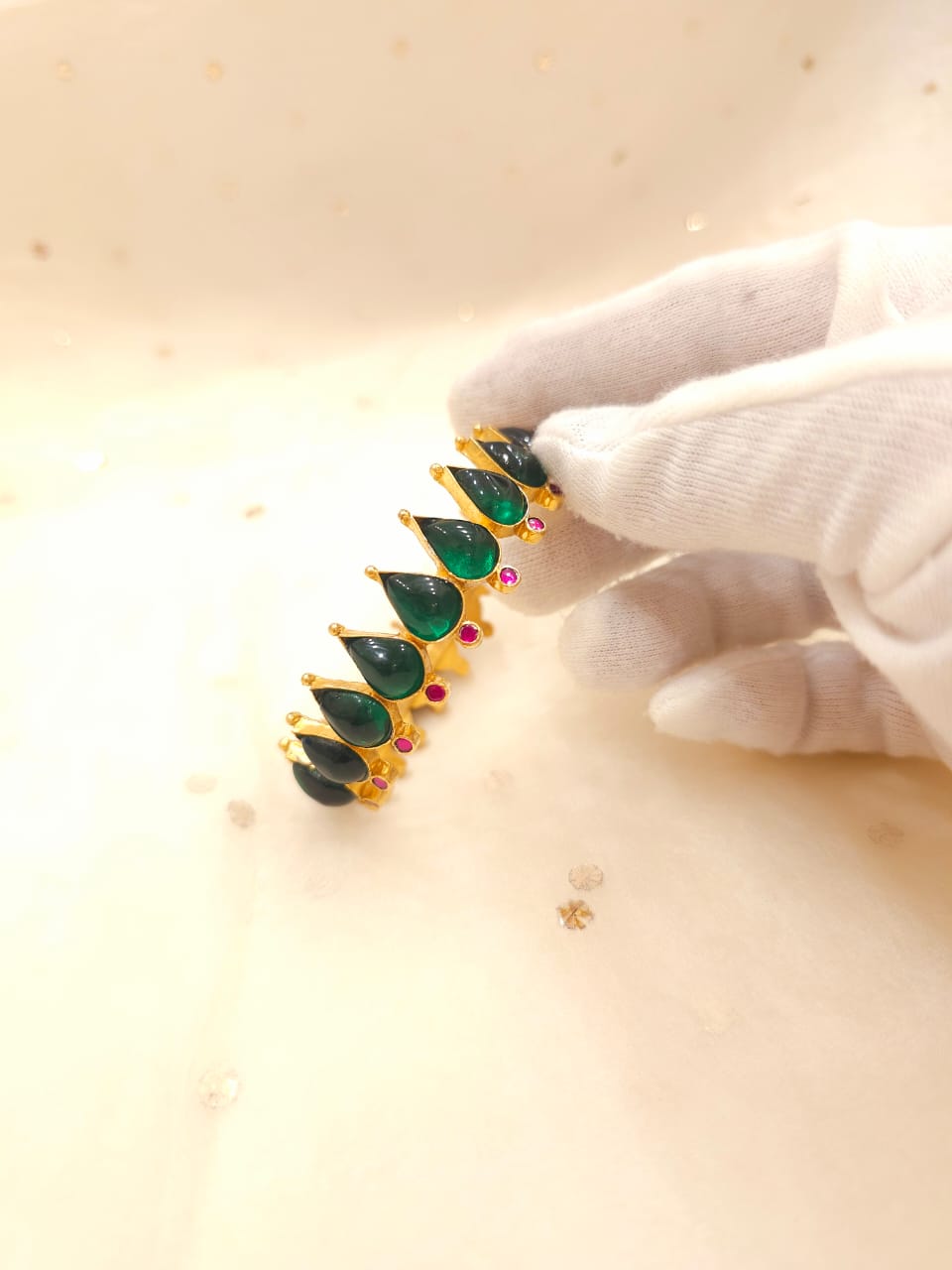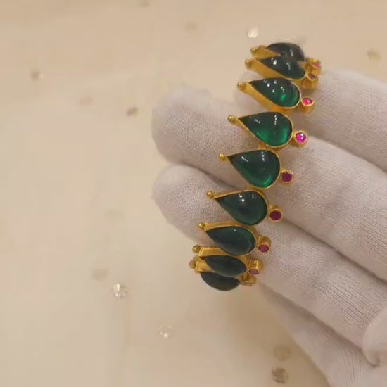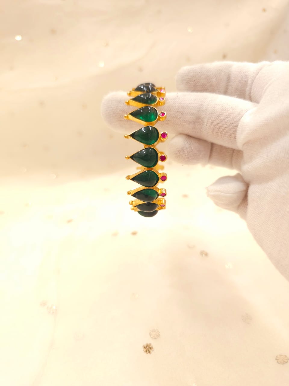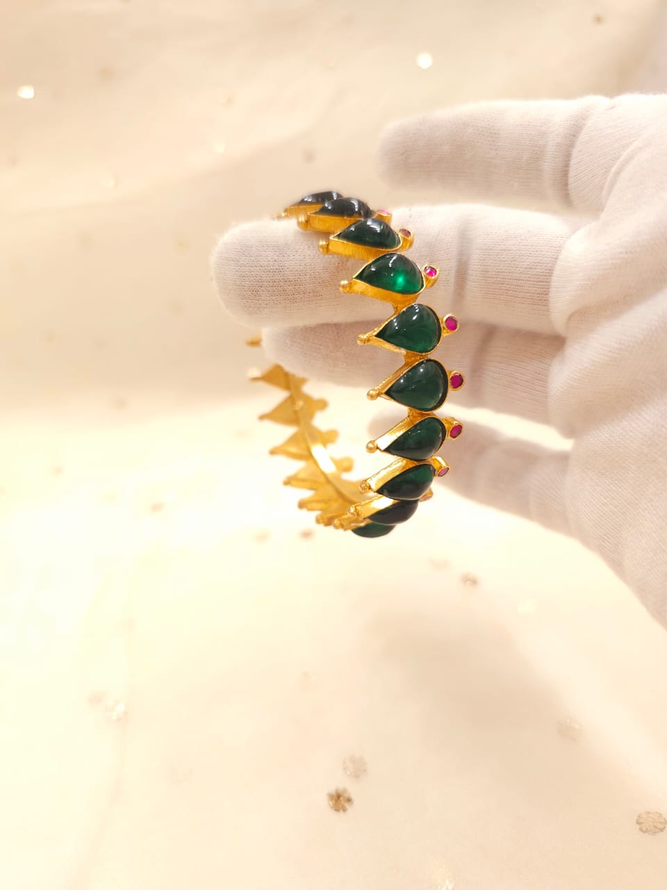 Jantar mantar gold plated bangle made with silver alloy and studded with stone polki and red - green stones. Please note the price mentioned is for one bangle.