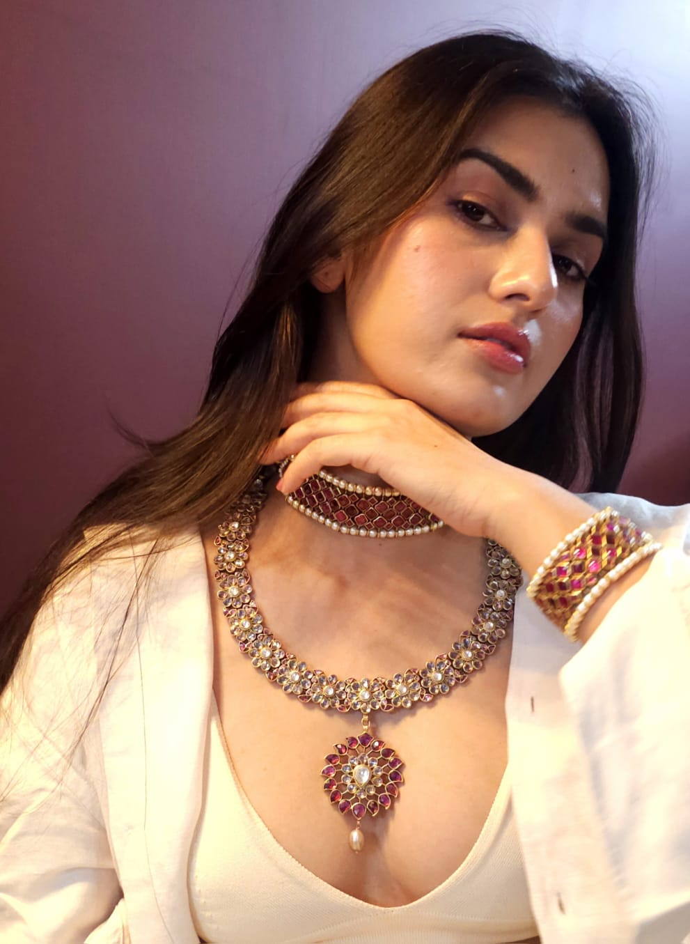 Kundan jewellery remains safe when kept away from moisture. So, keep your pieces in a dry pouch or a cotton muslin cloth. Also, do not spray perfumes or deodorants on yourself while wearing the jewellery – they can corrode the surface, leaving spots on the pieces.