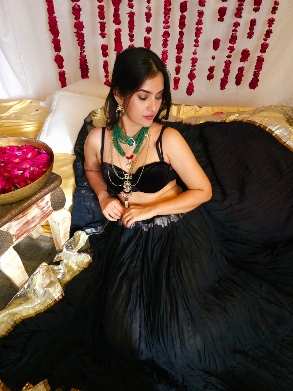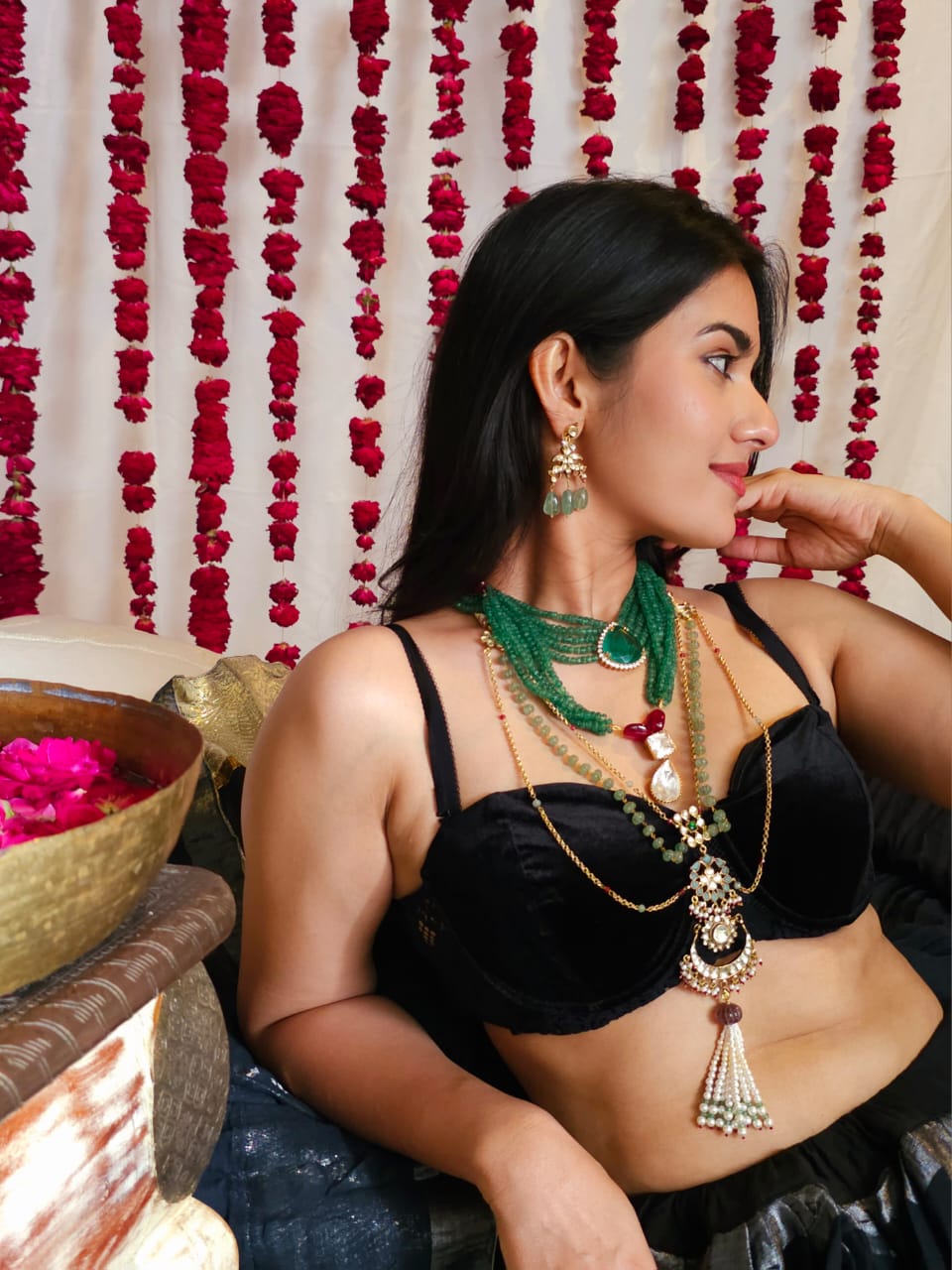 Kundan jewellery remains safe when kept away from moisture. So, keep your pieces in a dry pouch or a cotton muslin cloth. Also, do not spray perfumes or deodorants on yourself while wearing the jewellery – they can corrode the surface, leaving spots on the pieces.