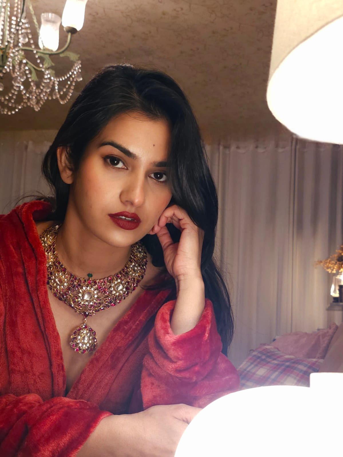Kundan jewellery remains safe when kept away from moisture. So, keep your pieces in a dry pouch or a cotton muslin cloth. Also, do not spray perfumes or deodorants on yourself while wearing the jewellery – they can corrode the surface, leaving spots on the pieces.