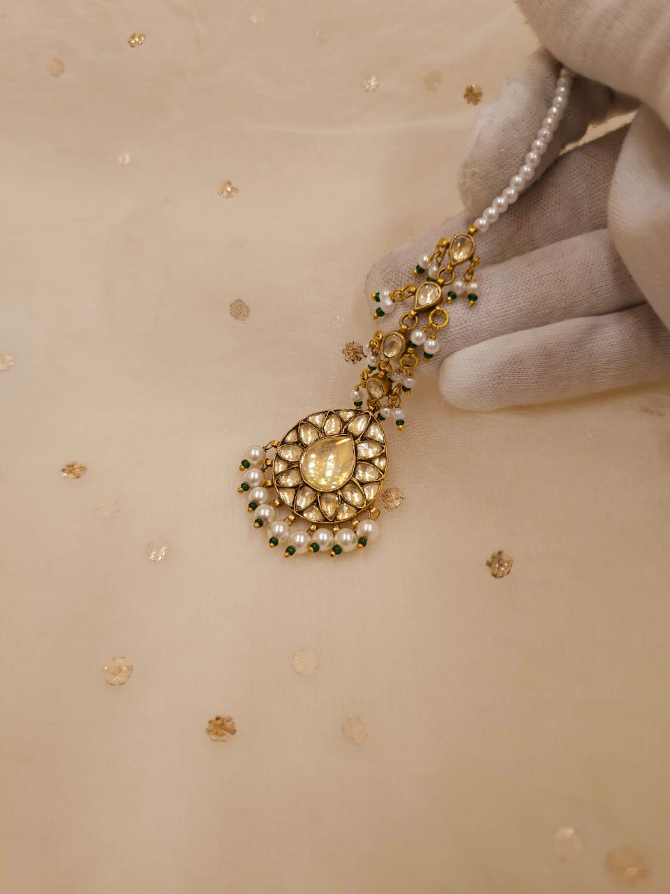 Kundan jewellery remains safe when kept away from moisture. So, keep your pieces in a dry pouch or a cotton muslin cloth. Also, do not spray perfumes or deodorants on yourself while wearing the jewellery – they can corrode the surface, leaving spots on the pieces.