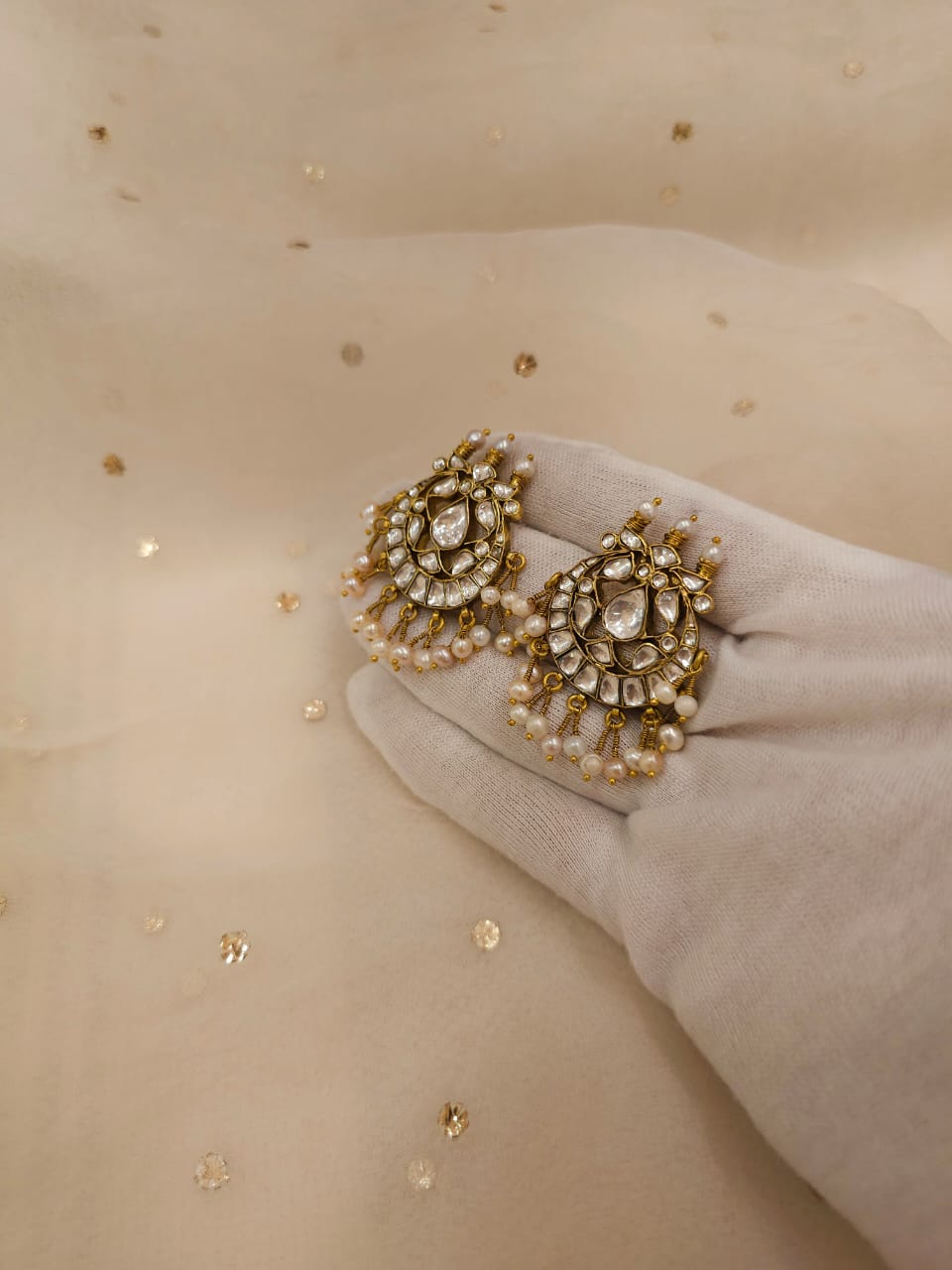 Kundan jewellery remains safe when kept away from moisture. So, keep your pieces in a dry pouch or a cotton muslin cloth. Also, do not spray perfumes or deodorants on yourself while wearing the jewellery – they can corrode the surface, leaving spots on the pieces.